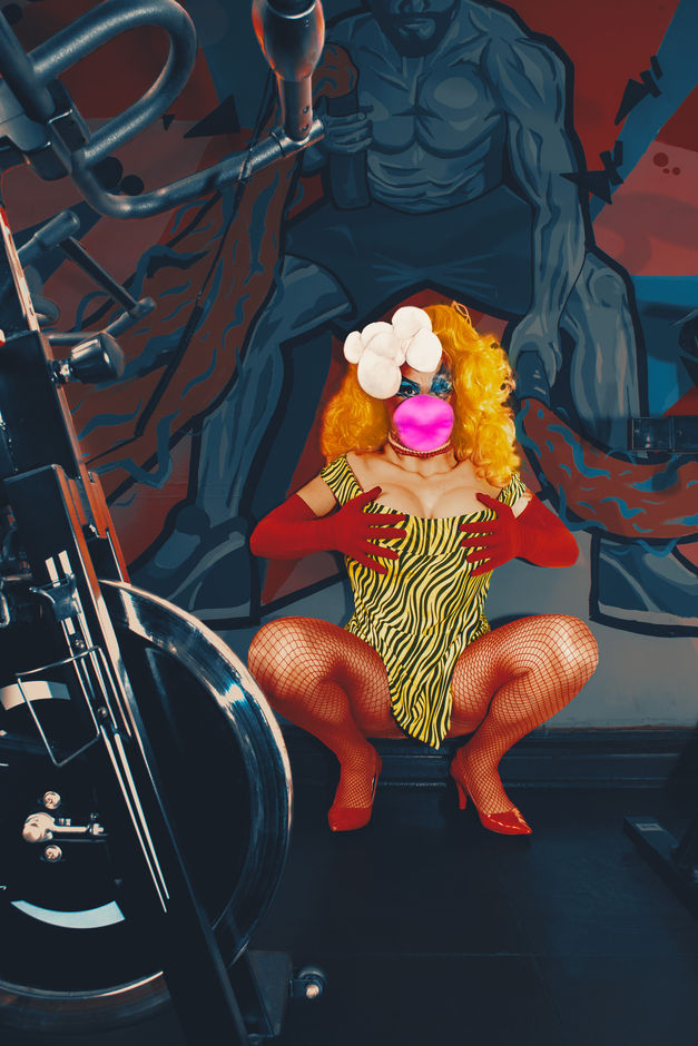 Desde Laurel construimos un universo visual inspirado en un gimnasio infernal de los años 80, utilizando locación y colorización como herramientas para encarnar la energía, el exceso y el ritual performático de la temática.